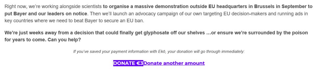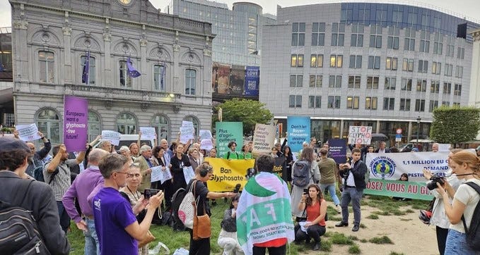 A PAN mindenkit meghívott a Parlamentben a "Citizen Action to #StopGlyphosate" elnevezésű akcióra, amelyre a konferencia után fél órával kerül sor az Európai Parlament előtt. A Risk-Monger nagyon izgatott volt, hogy részt vegyen és felemelje az öklét, különösen azután, hogy elolvasta az Eko (korábban SumOfUs) összes e-mailes felhívását, hogy támogassák ezt a nagyszerű #StopGlyphosate eseményt. Az Eko által valószínűleg összegyűjtött több százezer euróból remélte, hogy kap néhány szendvicset ... ha sikerül átverekednie magát a dühös, felháborodott polgárok tömegén.