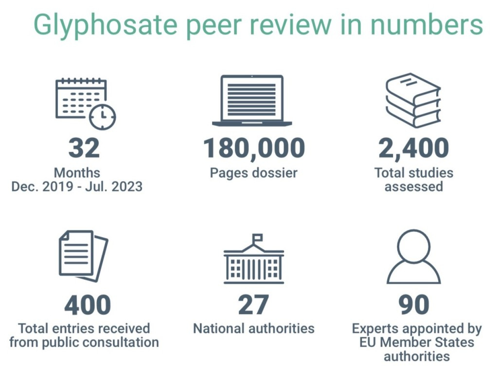 Az ECHA nem találta olyan meggyőzőnek a tanulmányok és publikációk özönét, és az EFSA közzétette a kockázatértékelés szakértői értékelését, amely arra a következtetésre jutott, hogy nincsenek kritikus aggodalomra okot adó területek. E szakvélemény alapján az Európai Bizottság javasolta a glifozát további 15 évre történő megújítását - a végén csak 10 évre újították meg az engedélyt.
